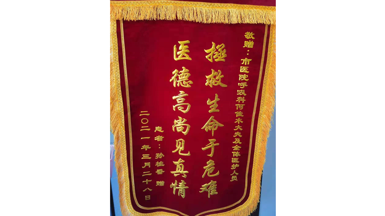 患者孙桂香致:通辽市医院呼吸重症科何佳木医生及全体医护人员