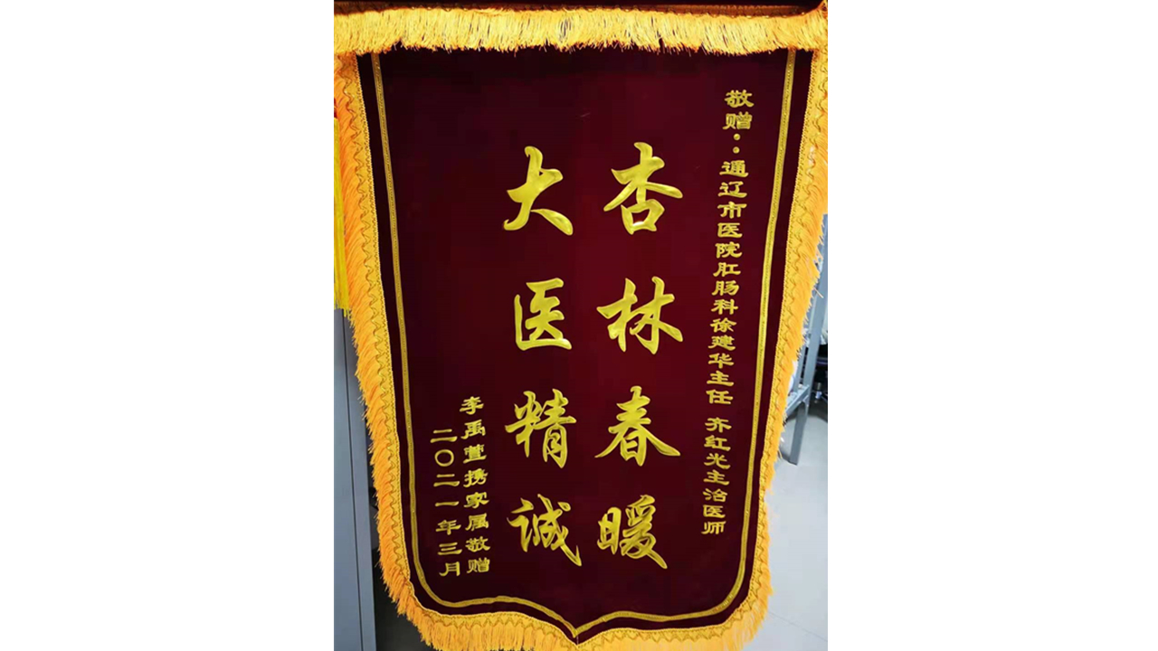 患者李禹萱及家属致:通辽市医院肛肠诊疗中心主任徐建华主任、主治医师齐红光