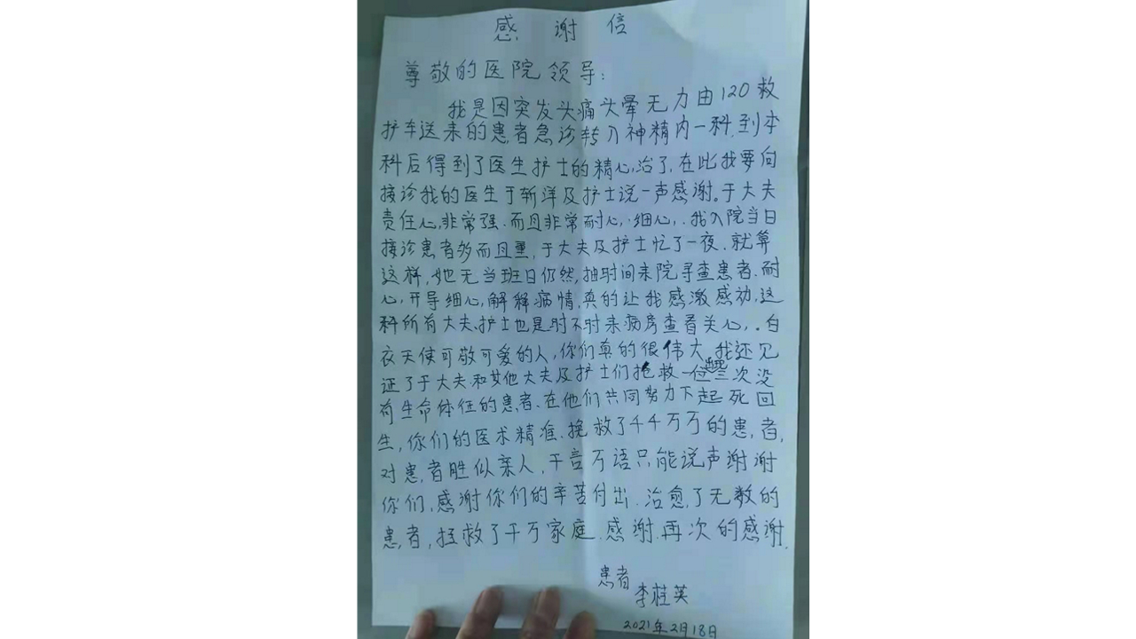 患者致:通辽市医院神经内一科全体医护人员