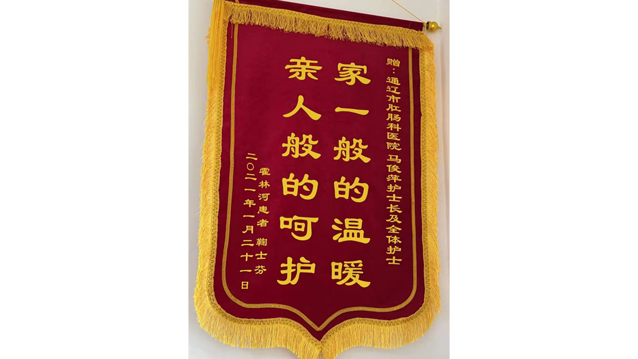 患者鞠士芬致:通辽市医院肛肠诊疗中心马俊萍护士长及全体护士