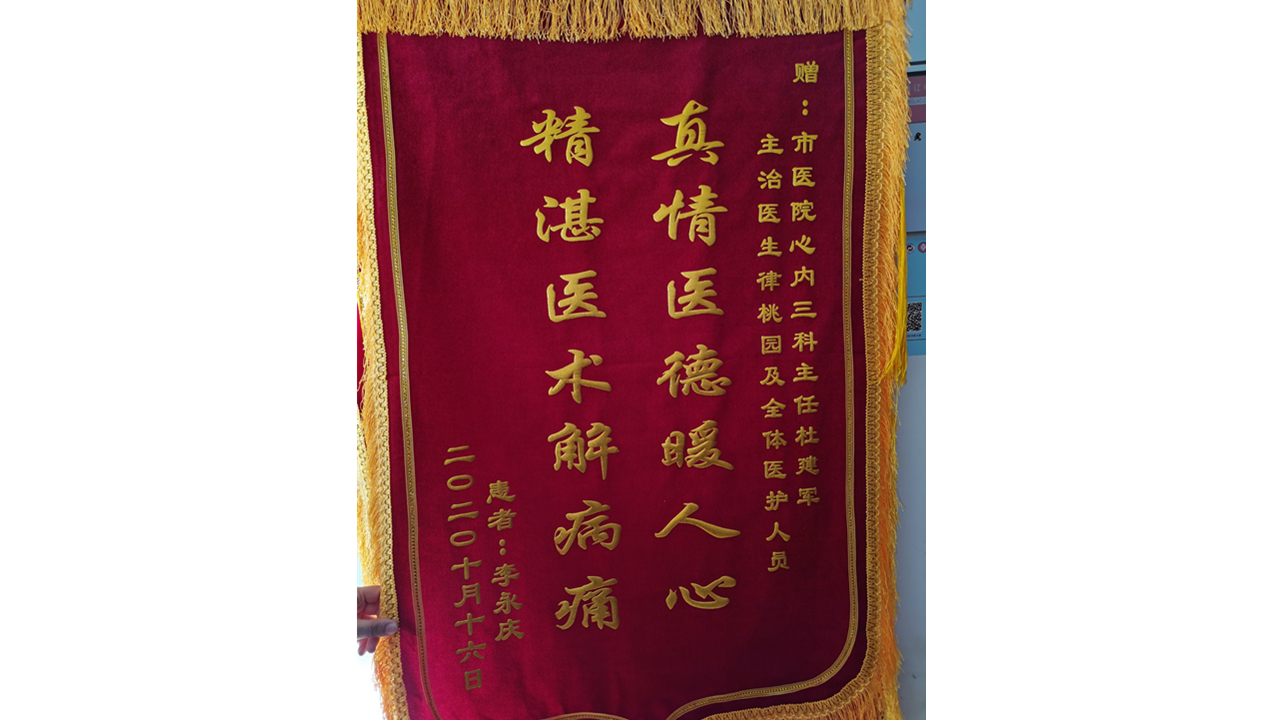 患者李永庆致:通辽市医院心内三科杜建军主任、律桃园医生及科室全体医护人员