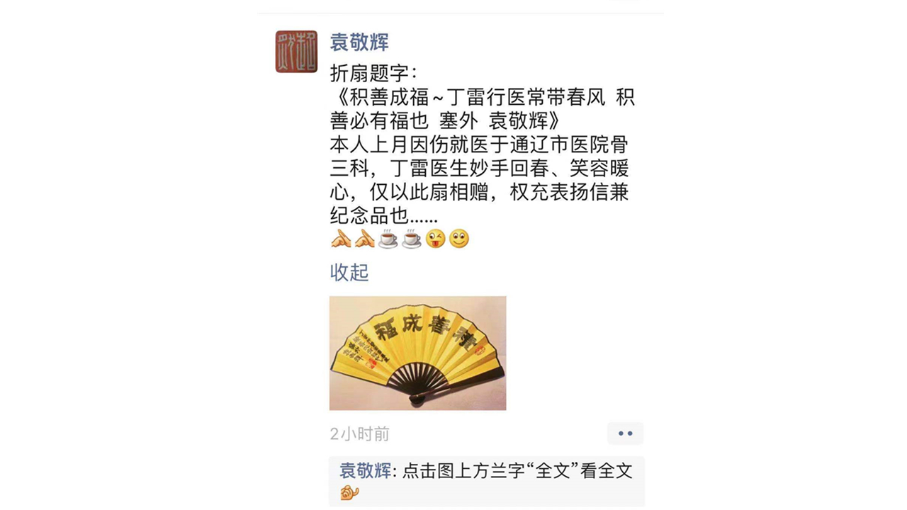 患者致:通辽市医院骨三科医生丁雷