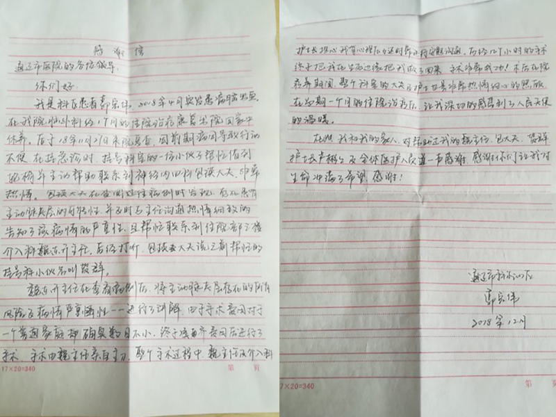 患者郭宏伟致:通辽市医院介入科魏东升主任、卢彬彬护士长、神经内四科包瑛医生、挂号室贺群、及全体医护人员
