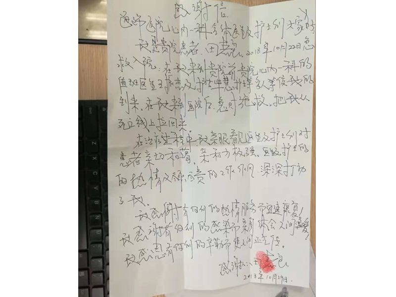 患者田喜良致:通辽市医院心血管内一科全体医护人员