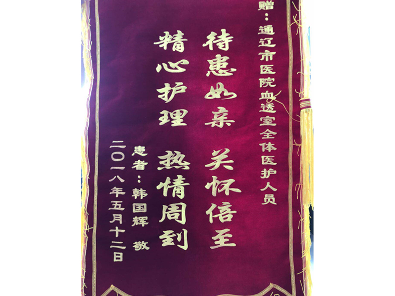 患者韩国辉致:通辽市医院血透室全体医护人员