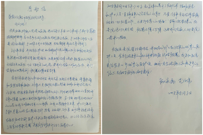 患者家属致:通辽市医院肿瘤血液科孙伟医生、乔树凯护士长及科室全体医护人员