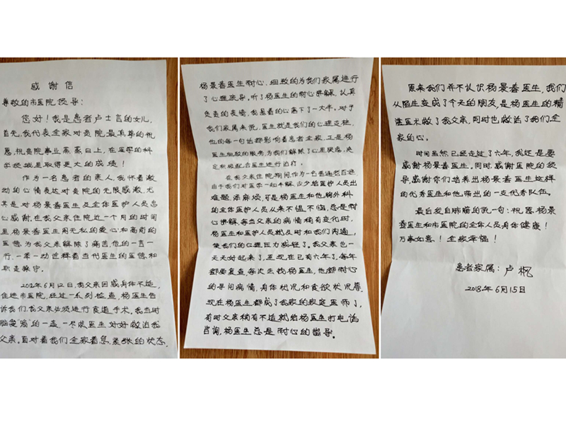 患者卢士言家属卢枫致:通辽市医院胸心外科杨景春主任及科室全体医护人员