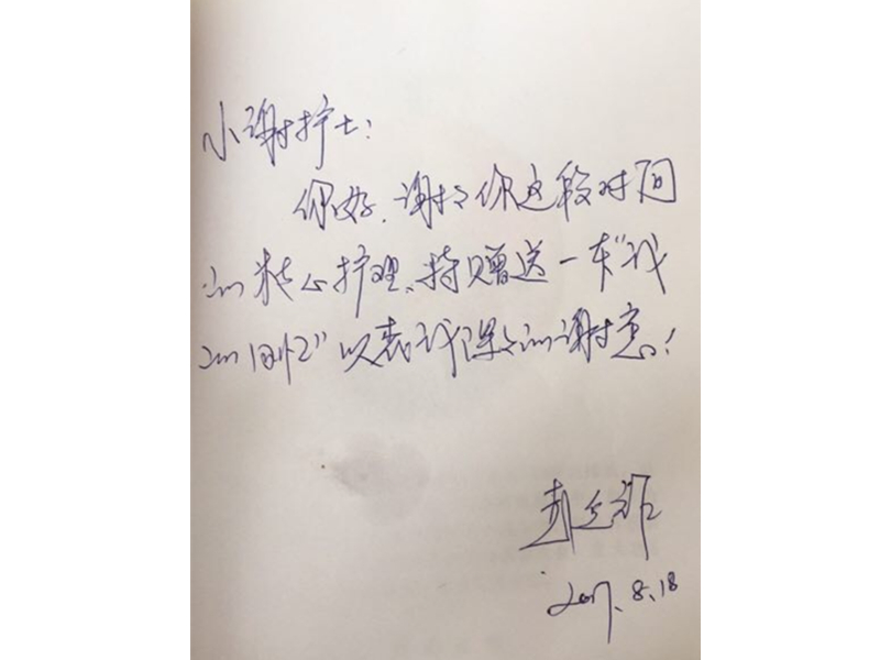 患者致:通辽市医院老年病科护士谢志欣