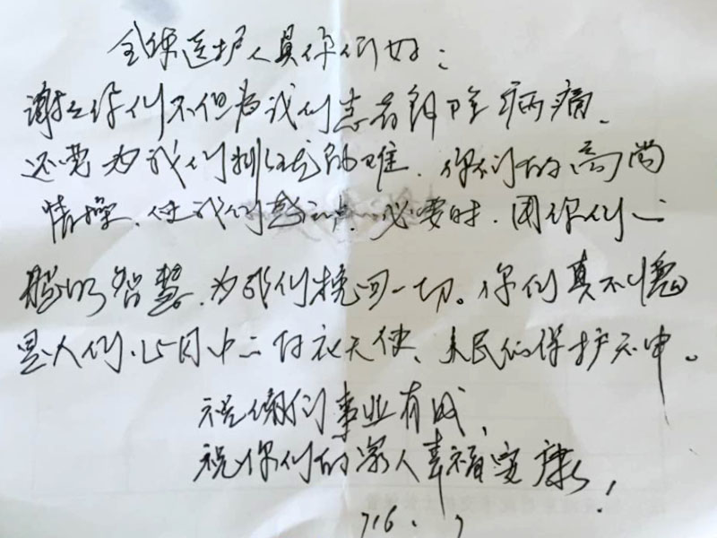 患者致:通辽市医院医护人员