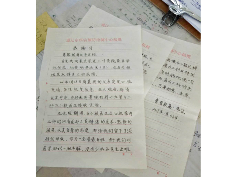 患者家属李佳致:通辽市医院心血管内三科谷晓颖医生及全体医护人员