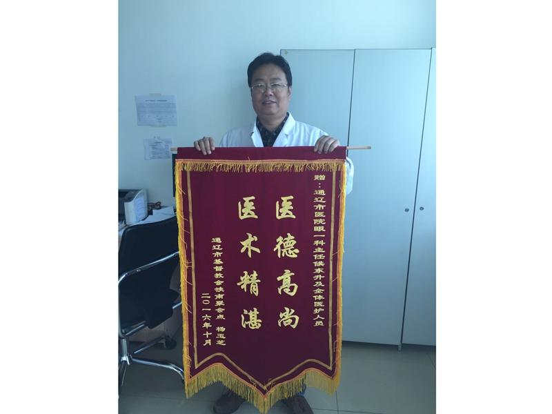 患者杨玉芝致:通辽市医院眼科主任医师侯东升及全体医护人员
