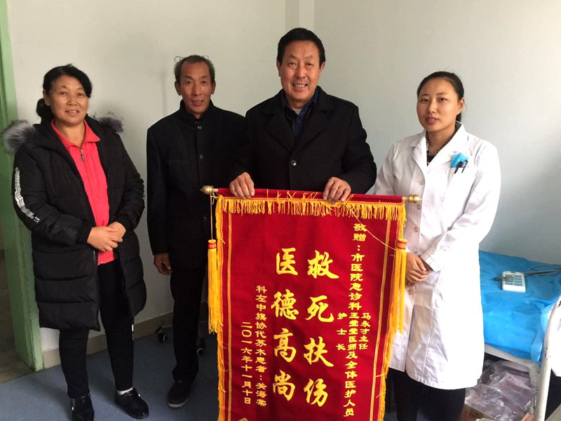 患者关海棠致:通辽市医院急诊科马永才主任、王莹莹医生、护士长及全体医护人员