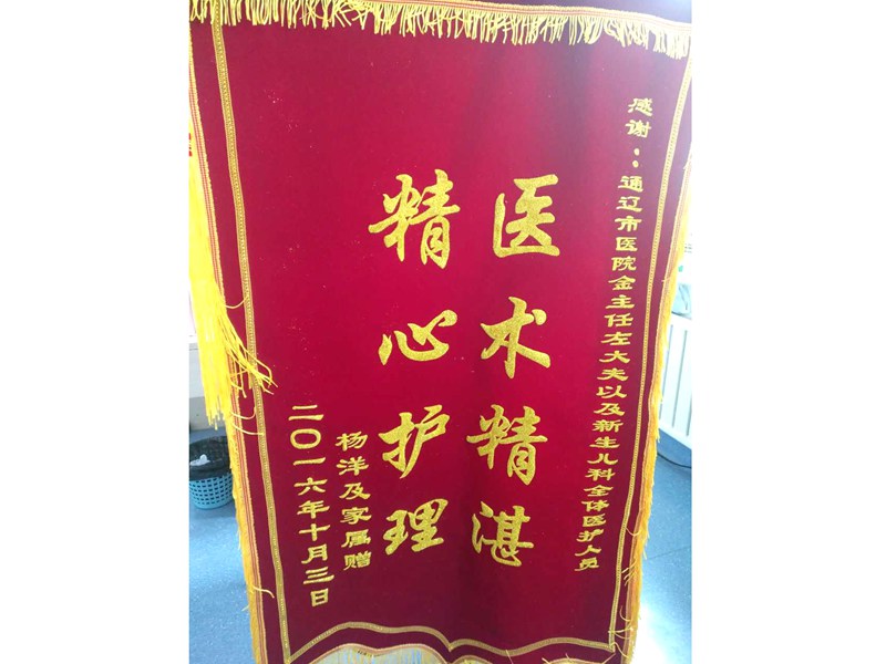 患者杨洋及家属致:通辽市医院新生儿科金秀梅主任、左佳医生及全体医护人员