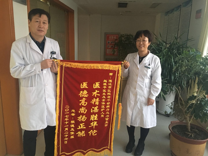 患者根得及家属致:通辽市医院老年病科乌力吉主任、赵桂平医生及全体医护人员
