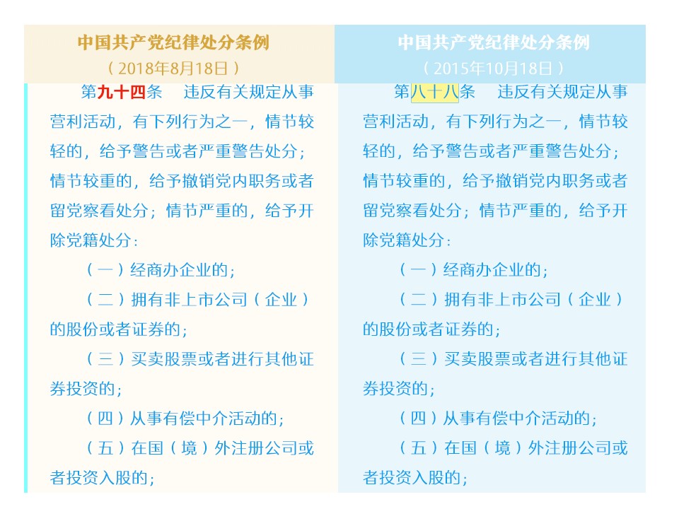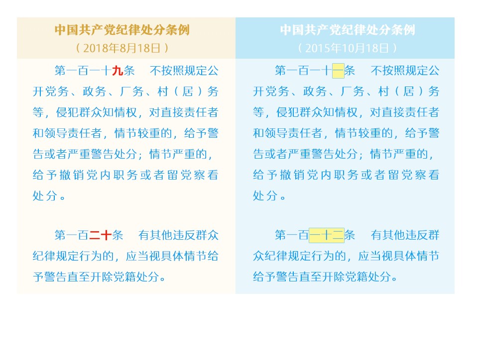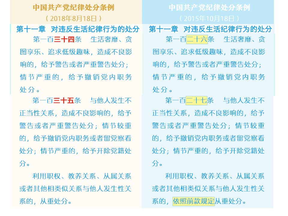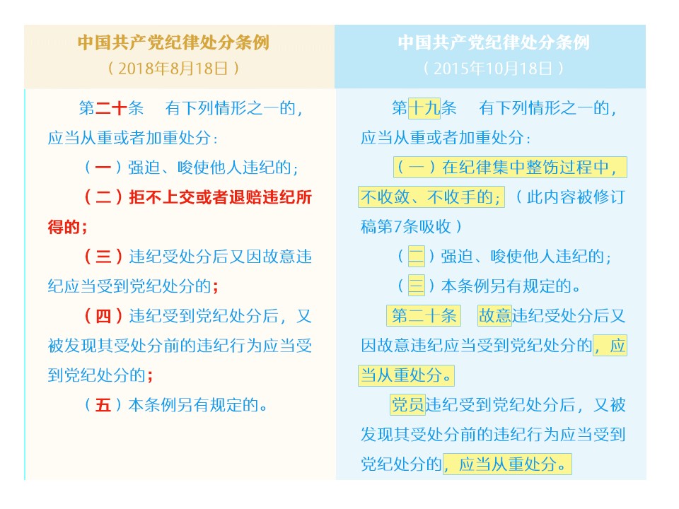 纪律处分条例修改对比
