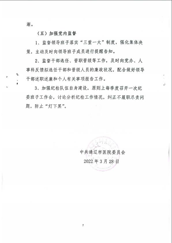 通辽市医院党风廉政建设责任名单