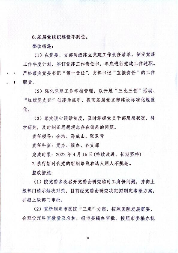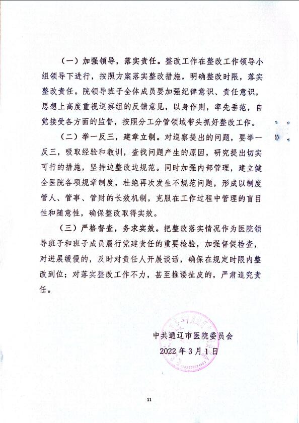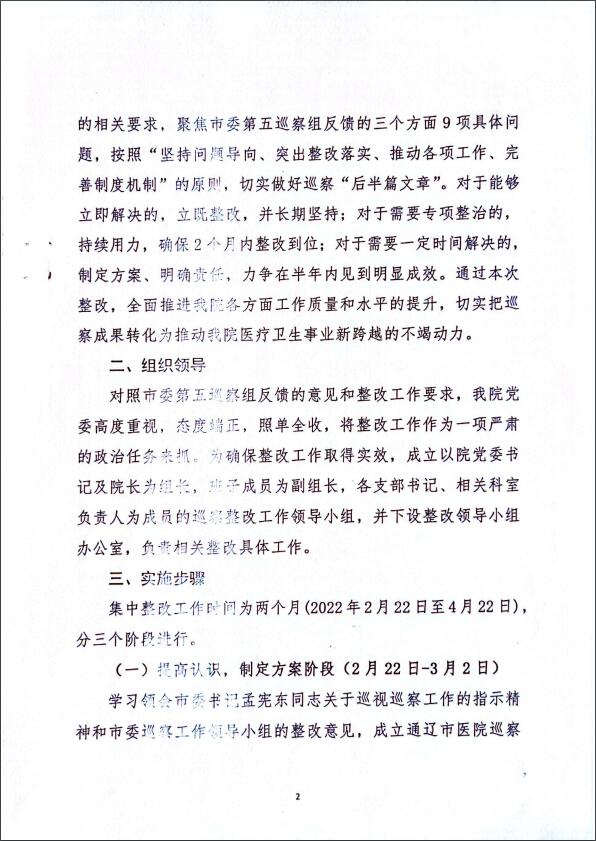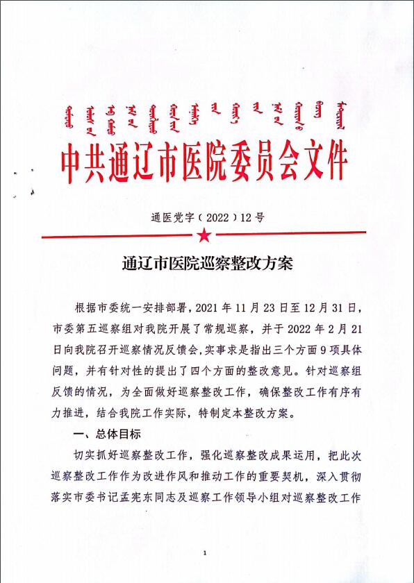 通辽市医院巡察整改方案