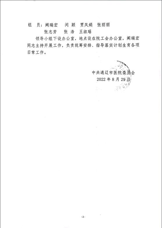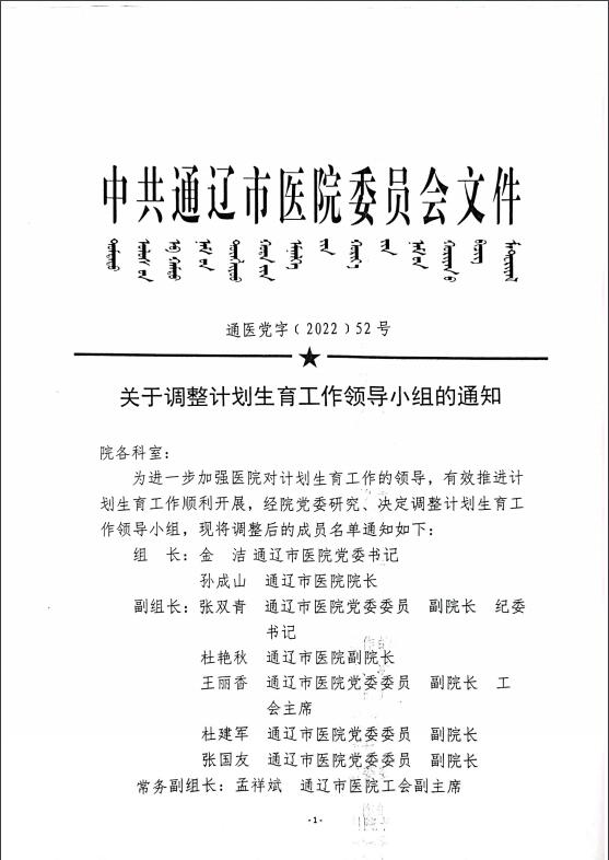 调整计划生育工作领导小组的通知