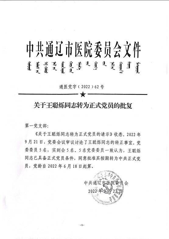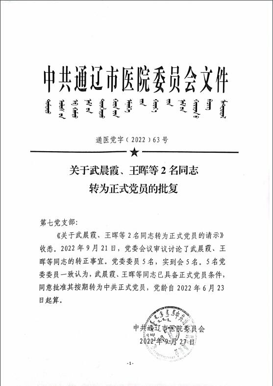 关于王聪烁、武晨霞、王晖转为正式党员的批复