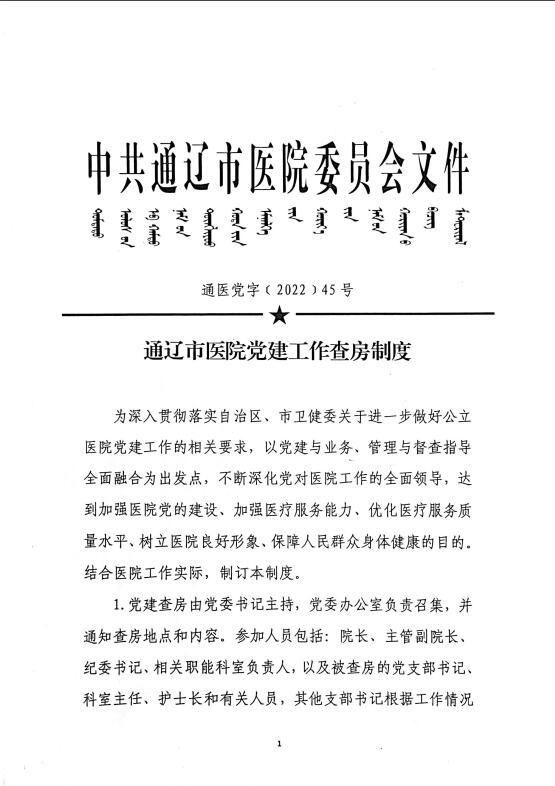 通辽市医院党建工作查房制度