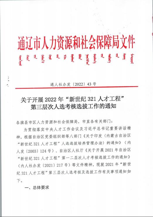 关于开展2022年“新世纪321人才工程”第三层次人选考核选拔工作的通知