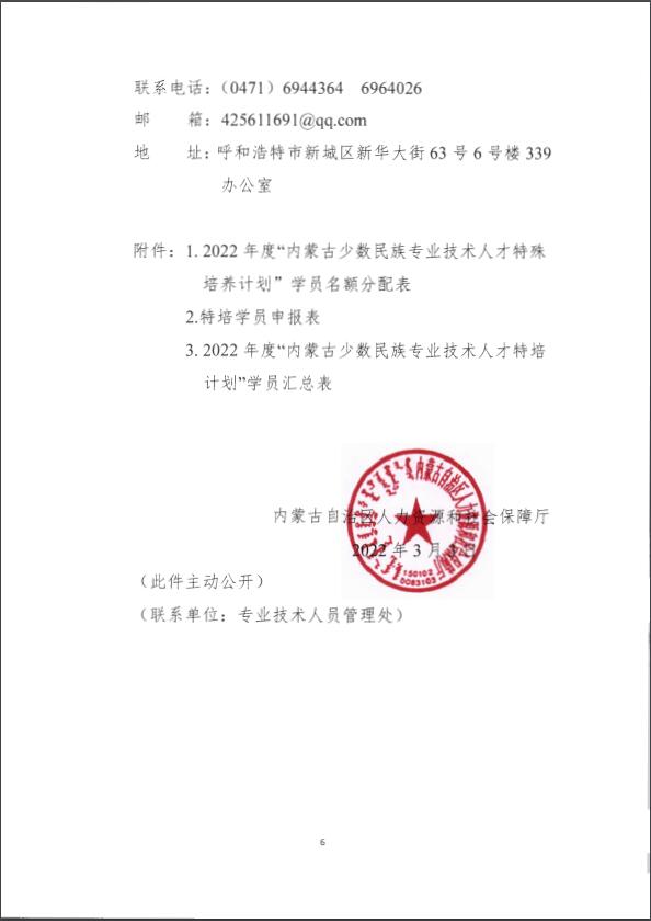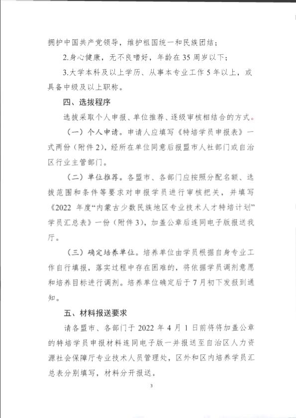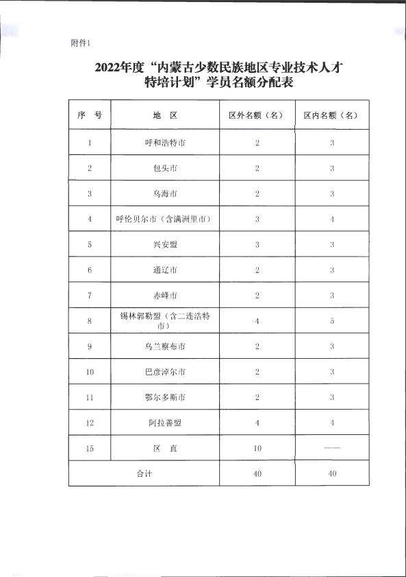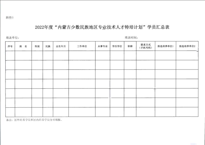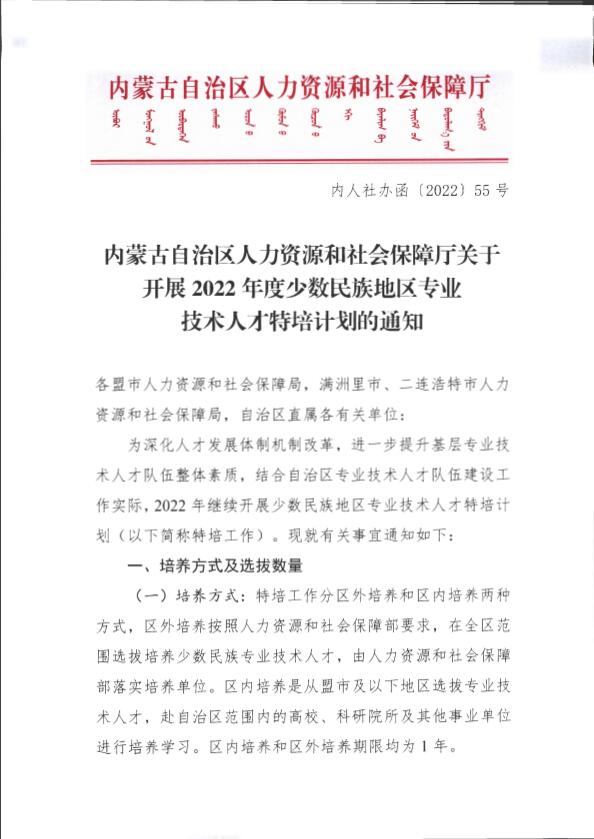内蒙古自治区人力资源和社会保障厅关于开展2022年度少数民族地区专业技术人才特培计划的通知
