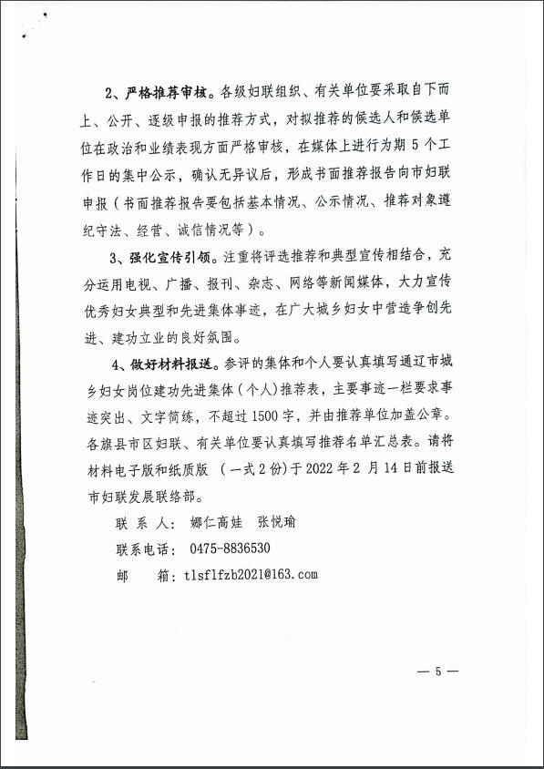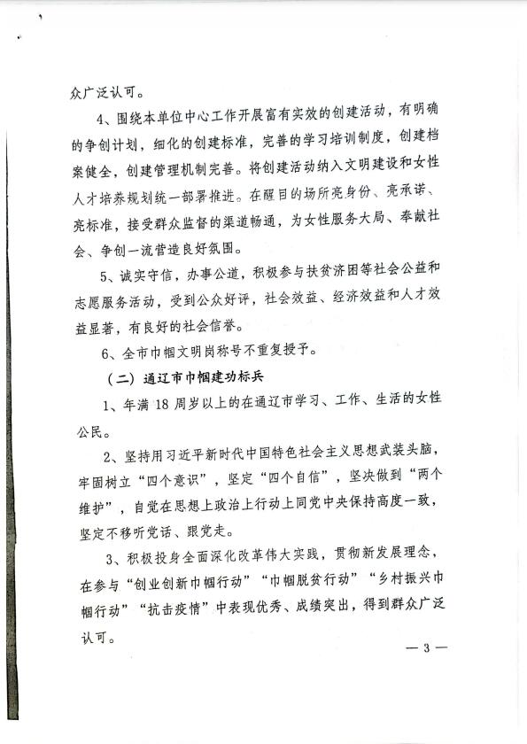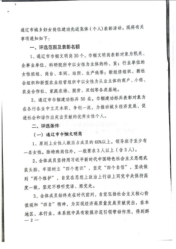 关于开展通辽市城乡妇女岗位建功先进集体(个人)评选表彰活动的通知
