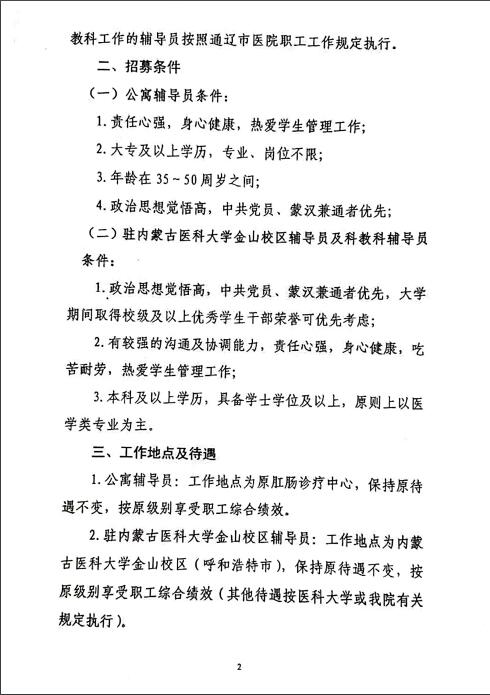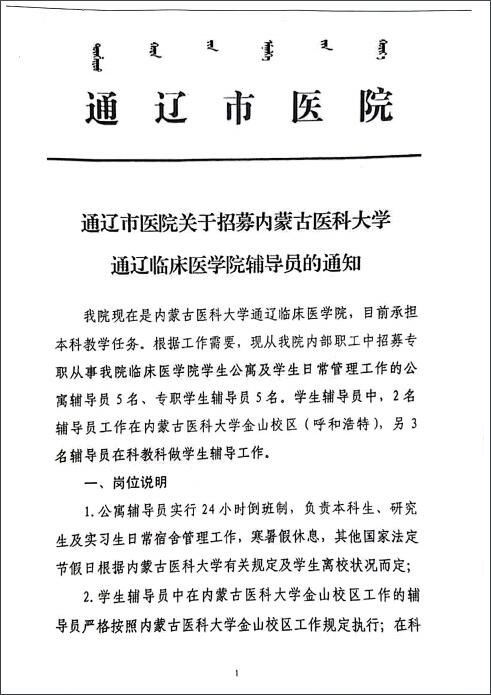 通辽市医院关于招募内蒙古医科大学通辽临床医学院辅导员的通知