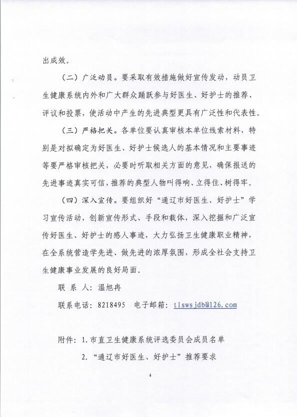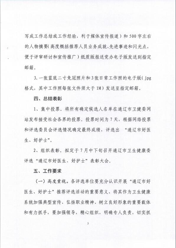 关于开展“通辽市好医生、好护士”评选活动的通知