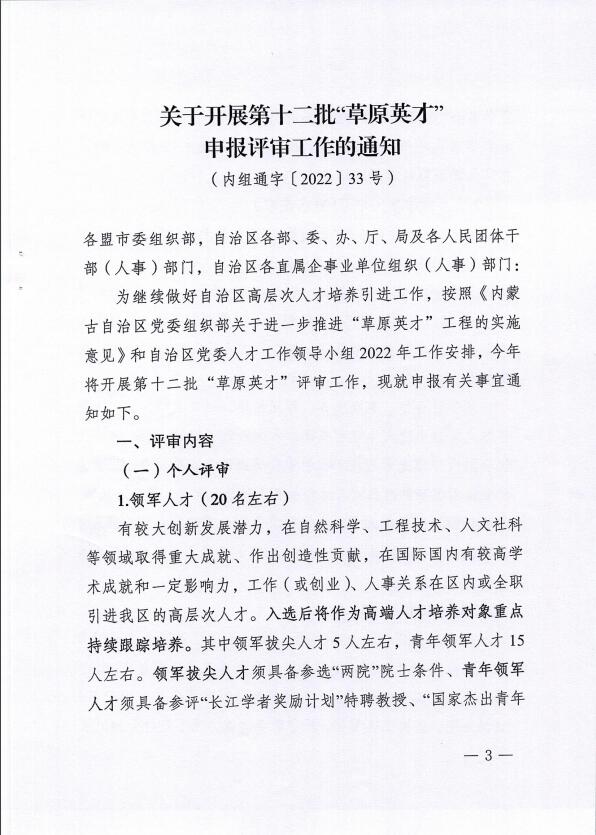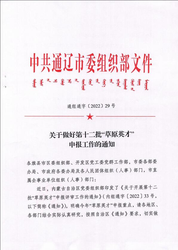 关于做好第十二批“草原英才”申报工作的通知