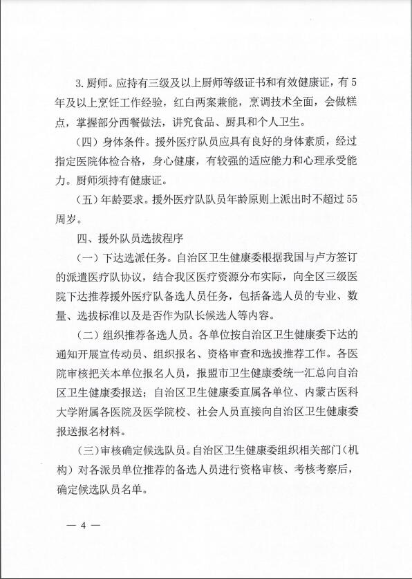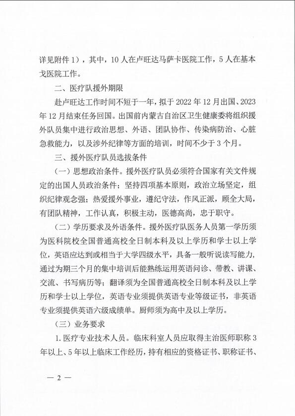 内蒙古自治区卫生健康委员会办公室关于做好第23批援卢旺达医疗队员选派工作的通知