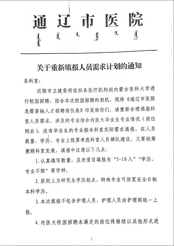 人才需求计划通知