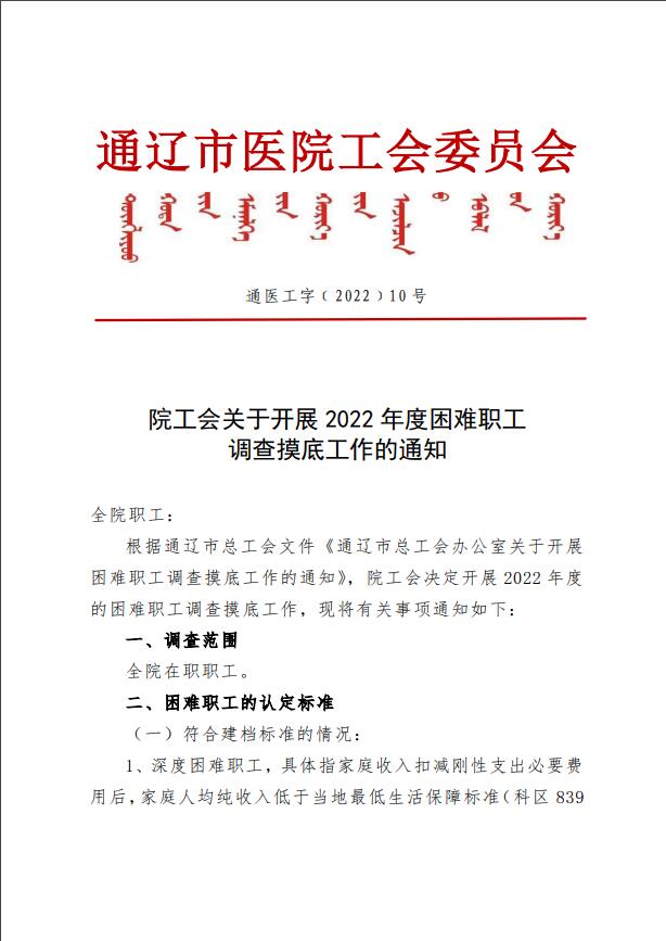 通医工字10号-院工会开展困难职工调查摸底工作的通知