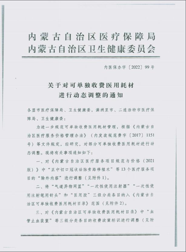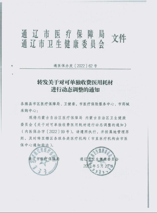 转发关于对可单独收费医用耗材进行动态调整的通知