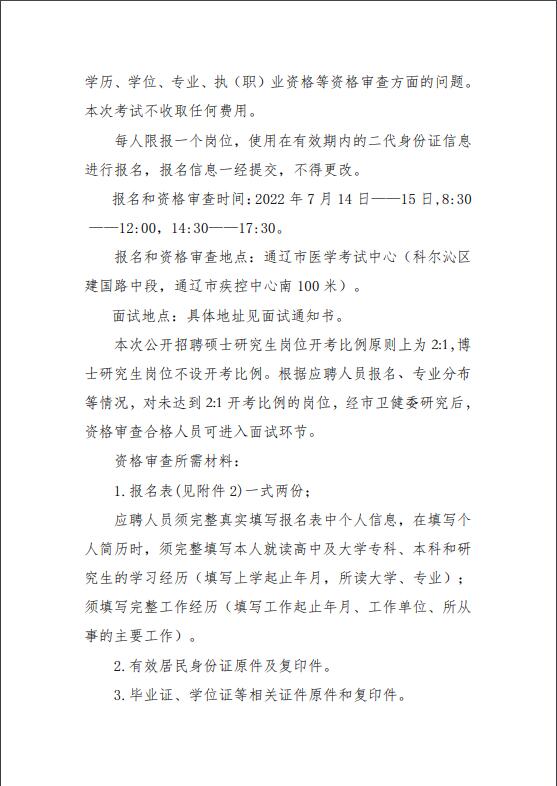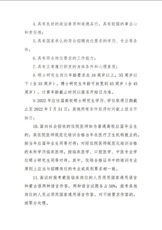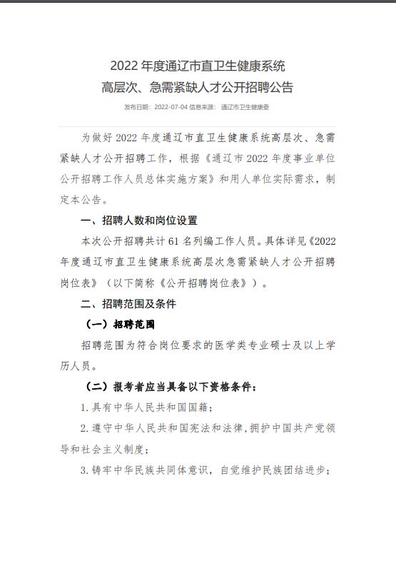 2022年度通辽市直卫生健康系统高层次、急需紧缺人才公开招聘公告