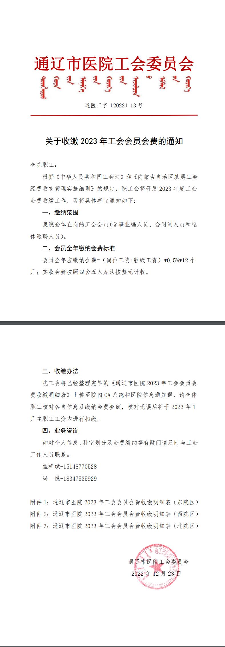 通医工字13号(收缴2023年会费的通知)