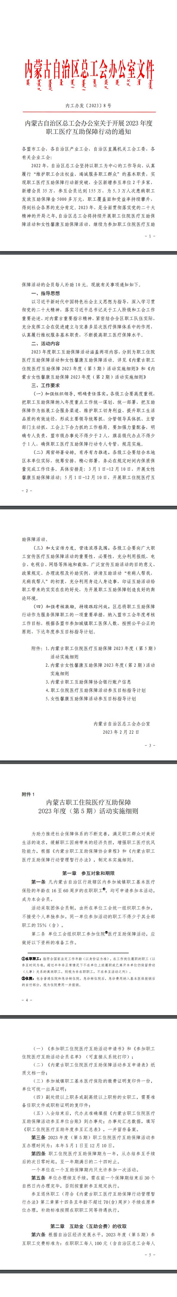 2023年职工医疗互助保障通知内工办发〔2023〕8号