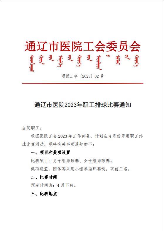 通医工字02号 职工排球比赛通知