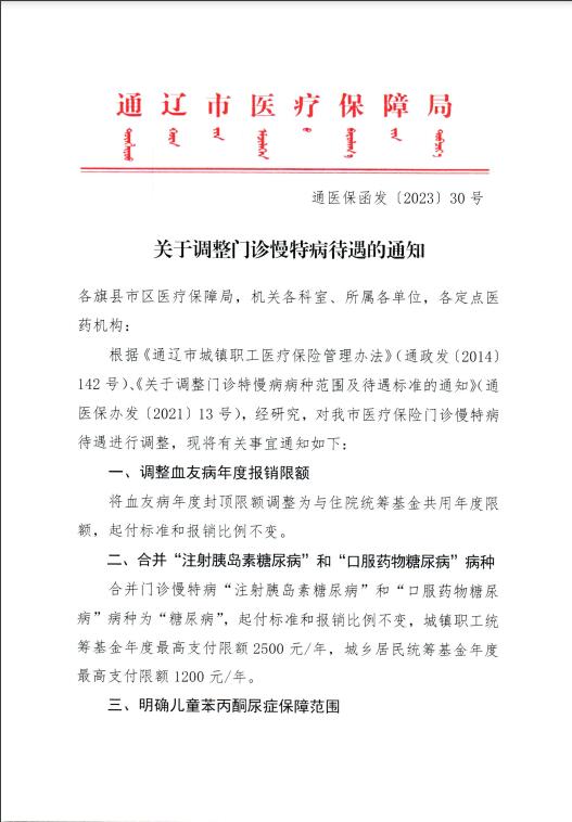 关于调整门诊慢特病待遇的通知