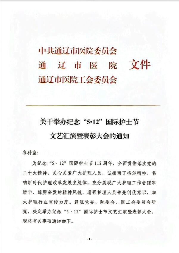 关于举办纪念“5.12”国际护士节文艺汇演暨表彰大会的通知