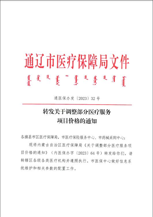 转发关于调整部分医疗服务项目价格的通知