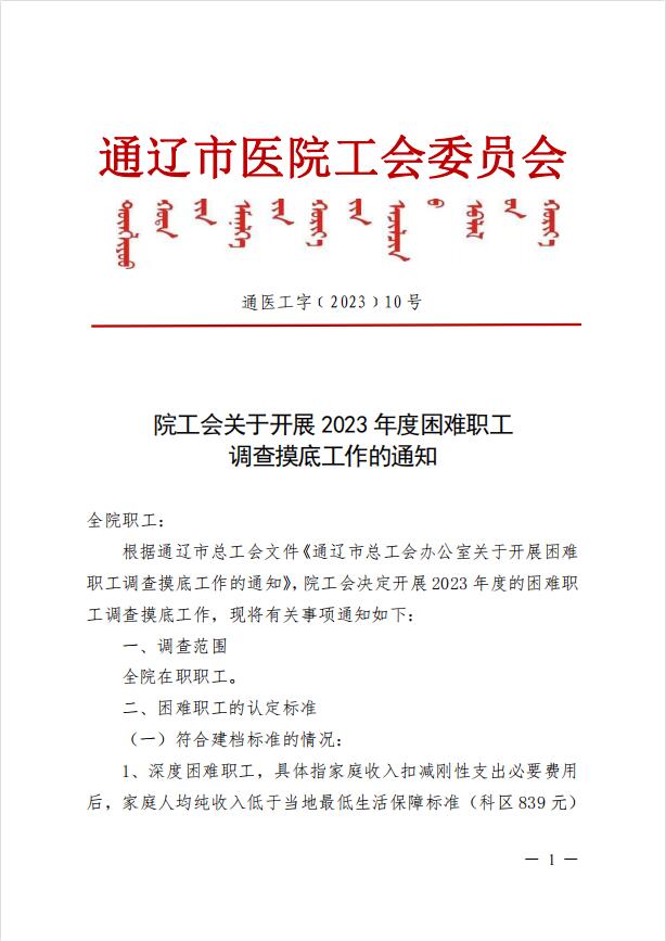 院工会关于开展2023年度困难职工调查摸底工作的通知