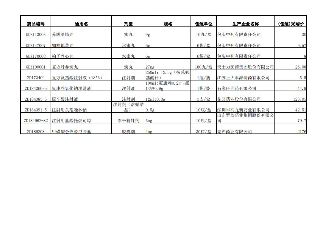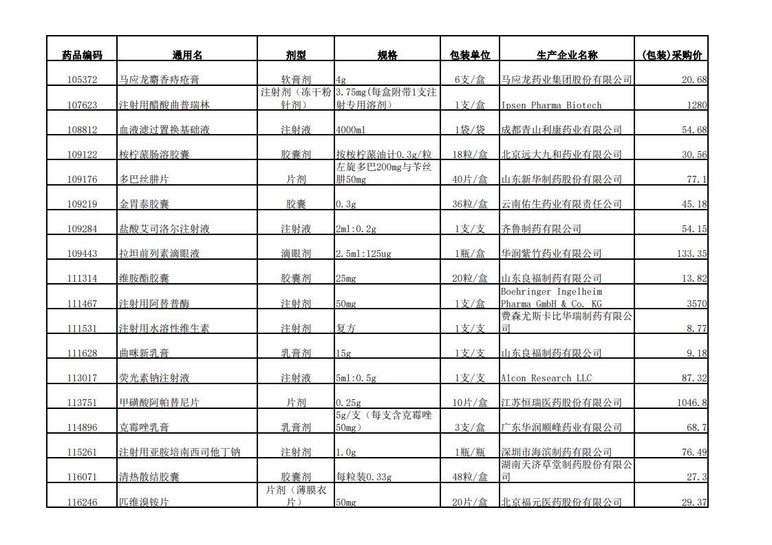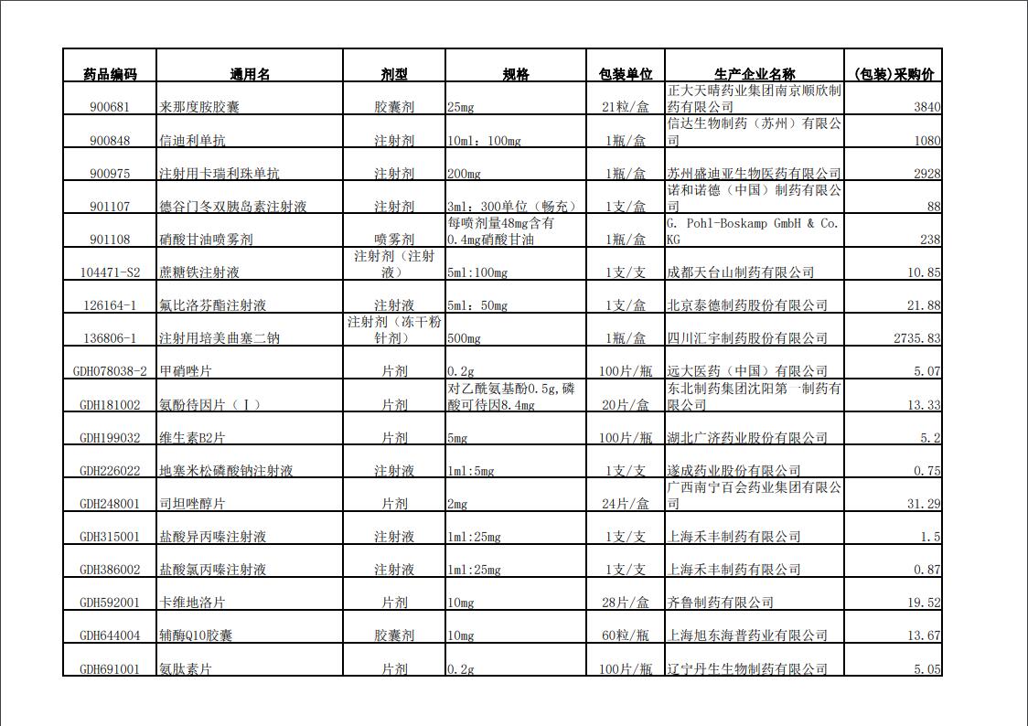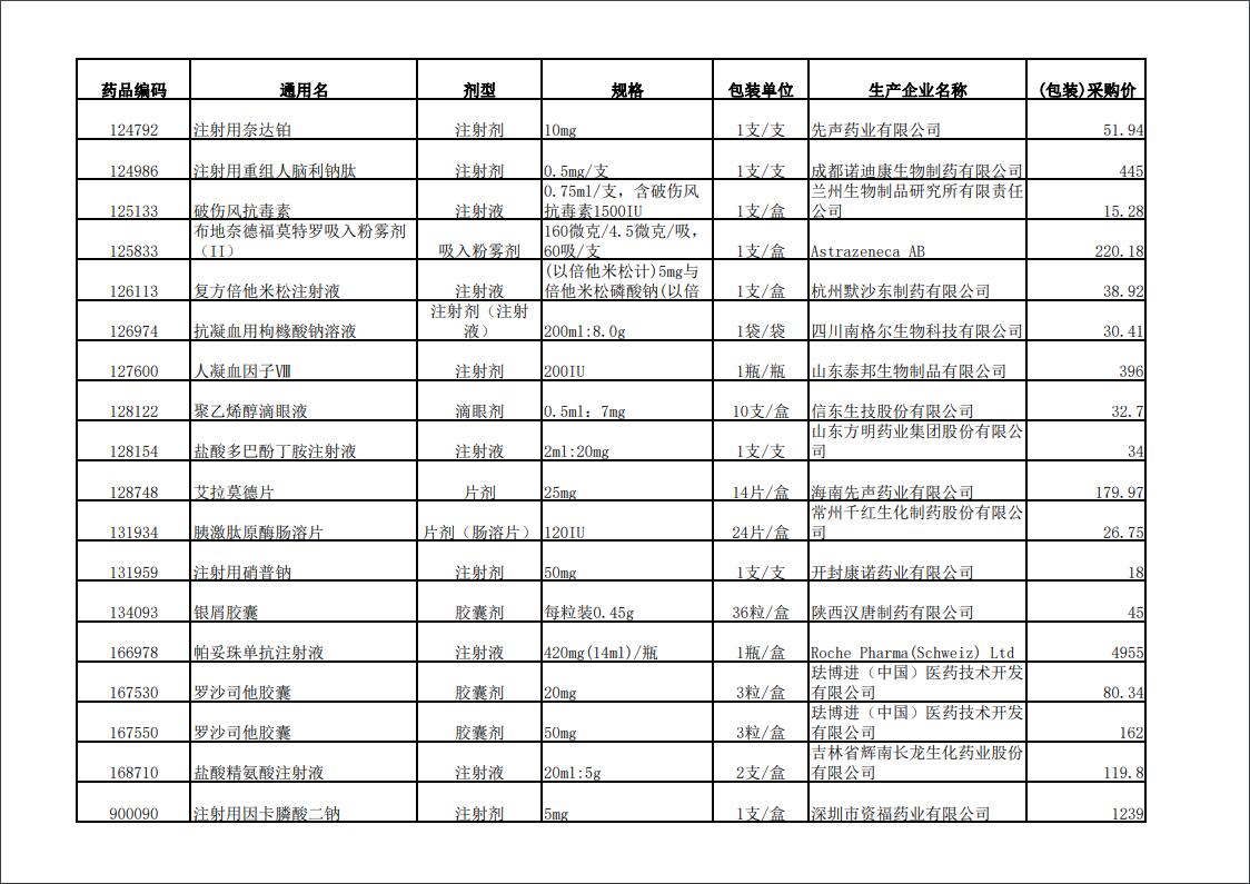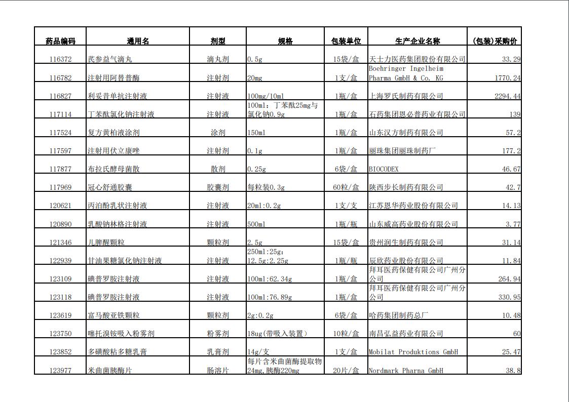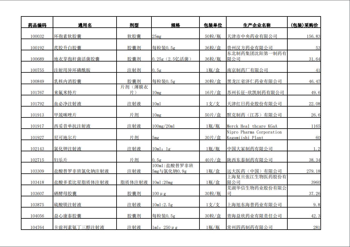 2022年第一季度药品价格公示表