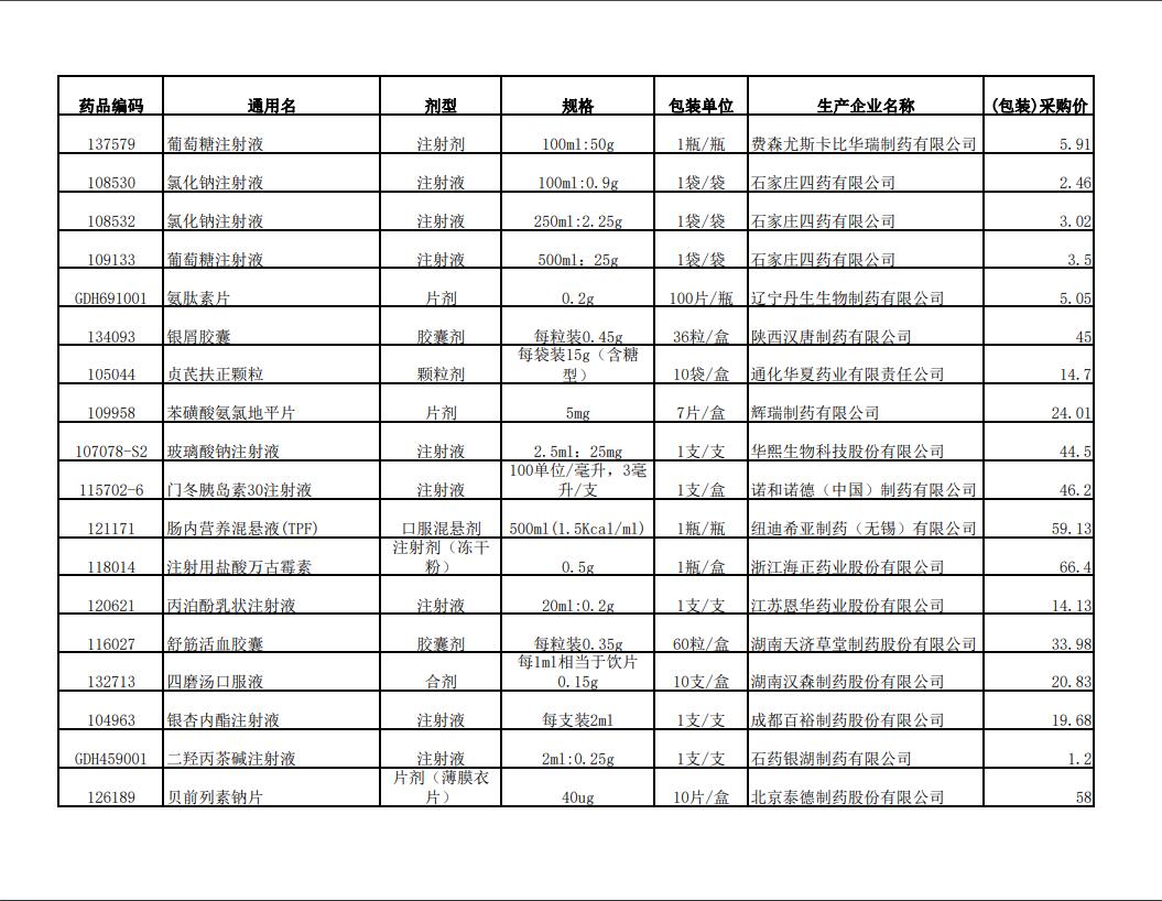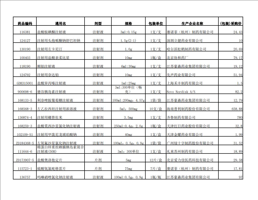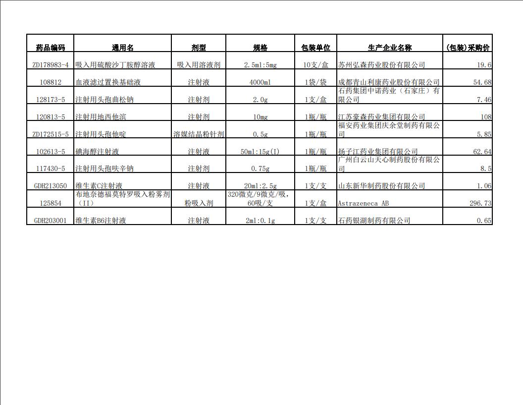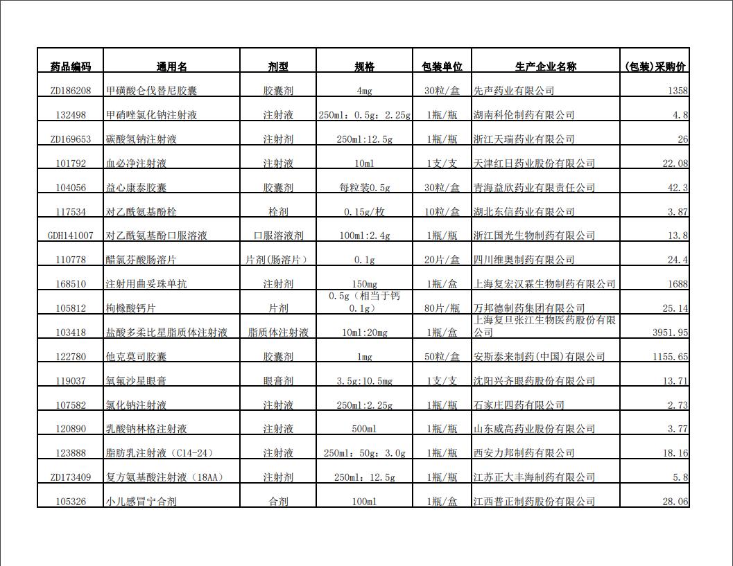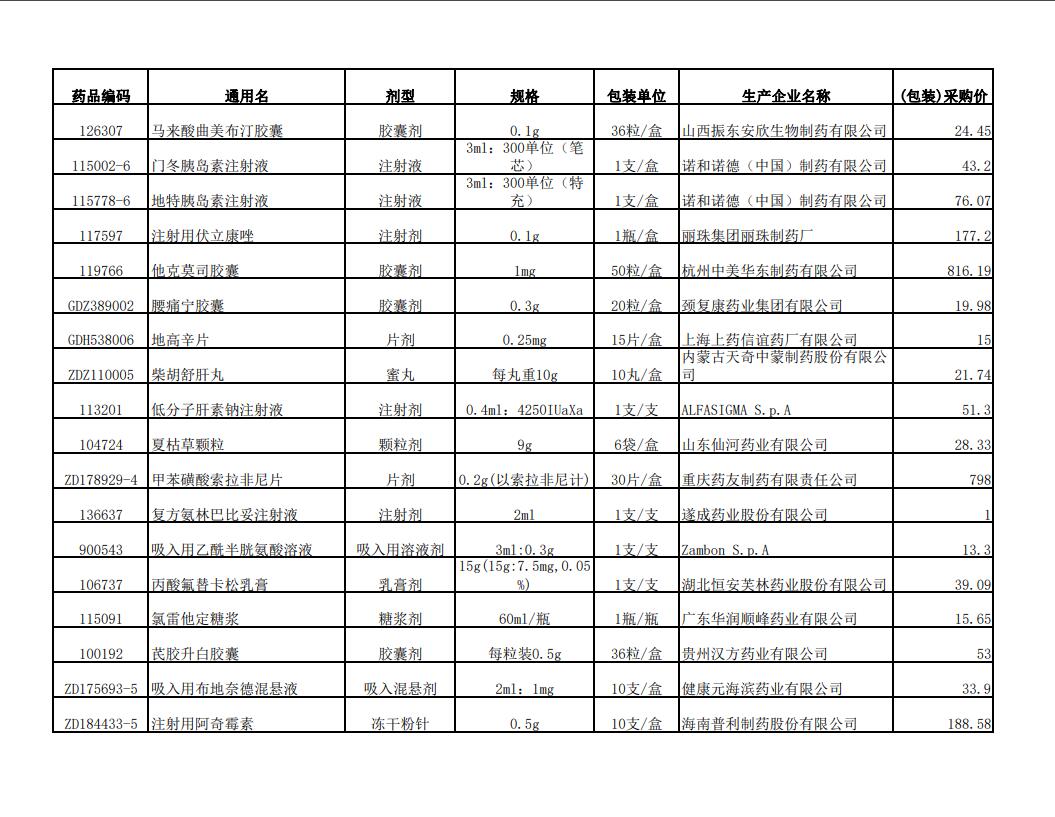 2022年第二季度药品价格公示表