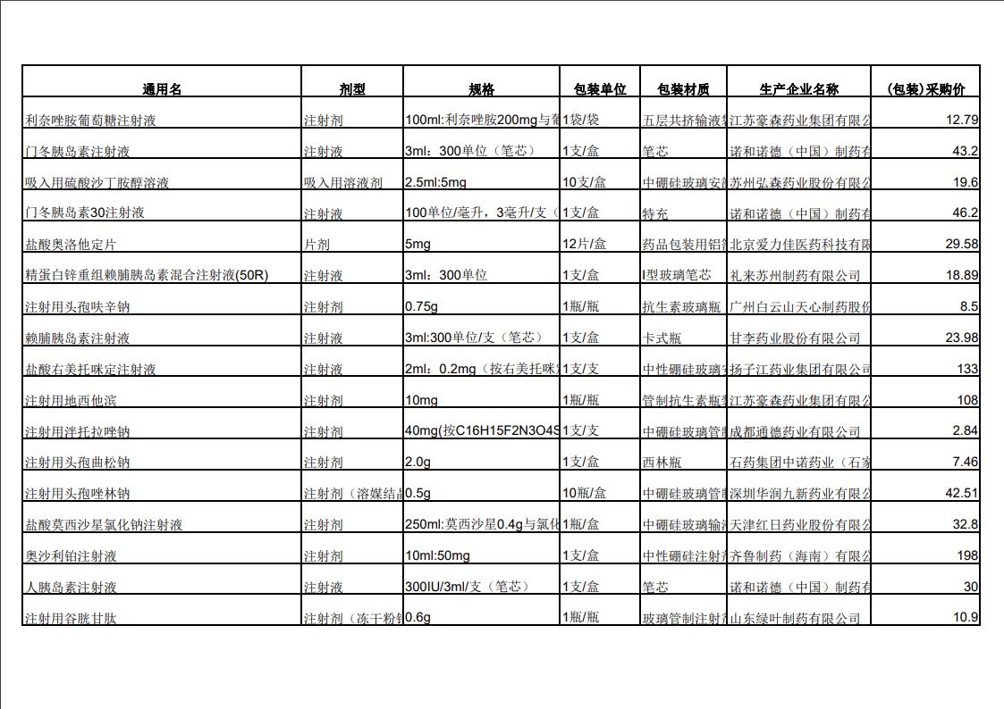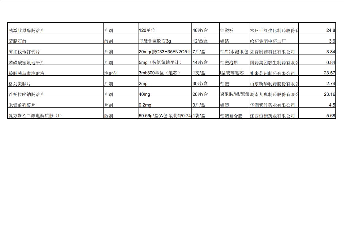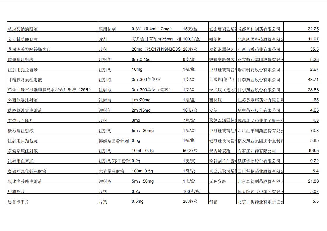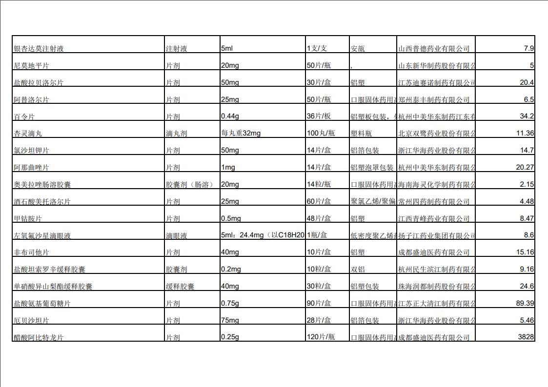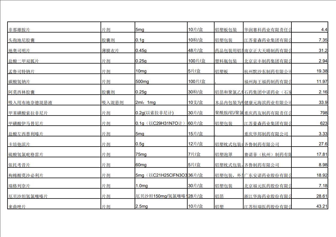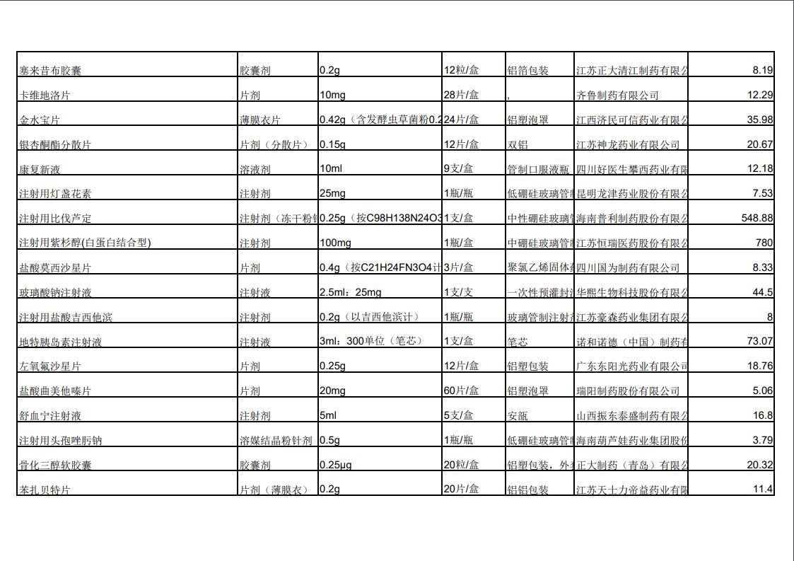 2022年第三季度药品价格公示
