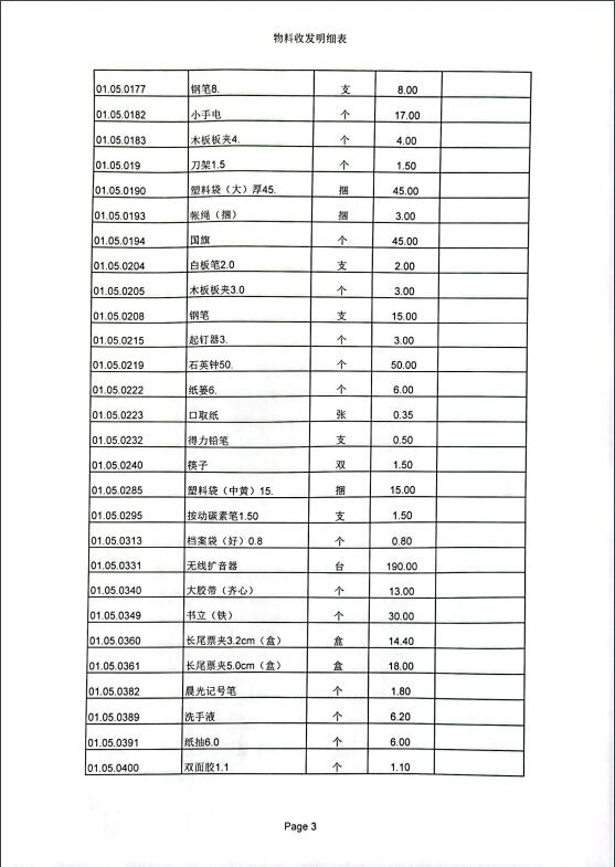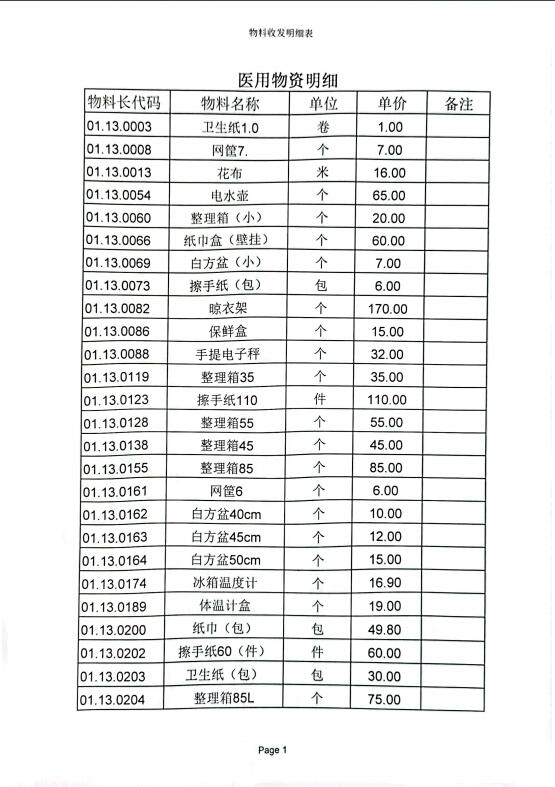 2022年第三季度总务科、办公用品、物料、电料、医用物资明细表