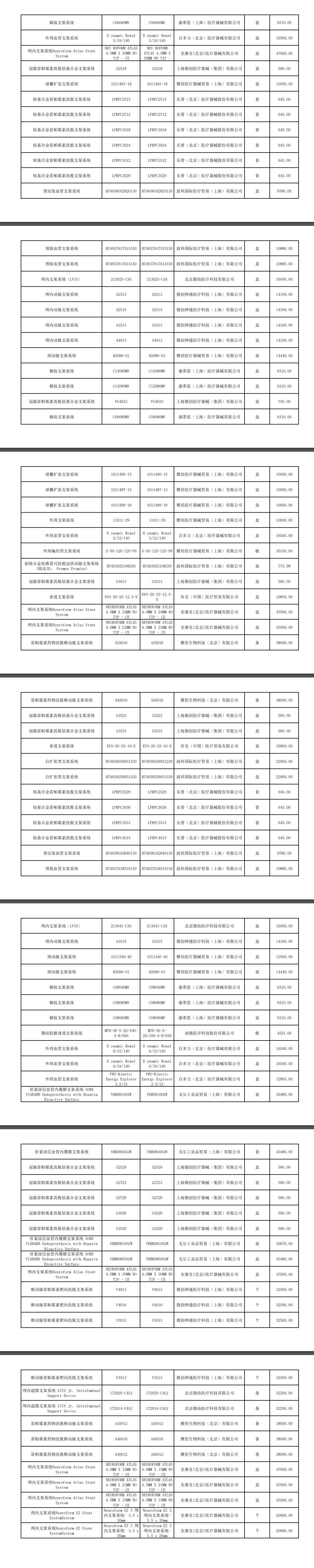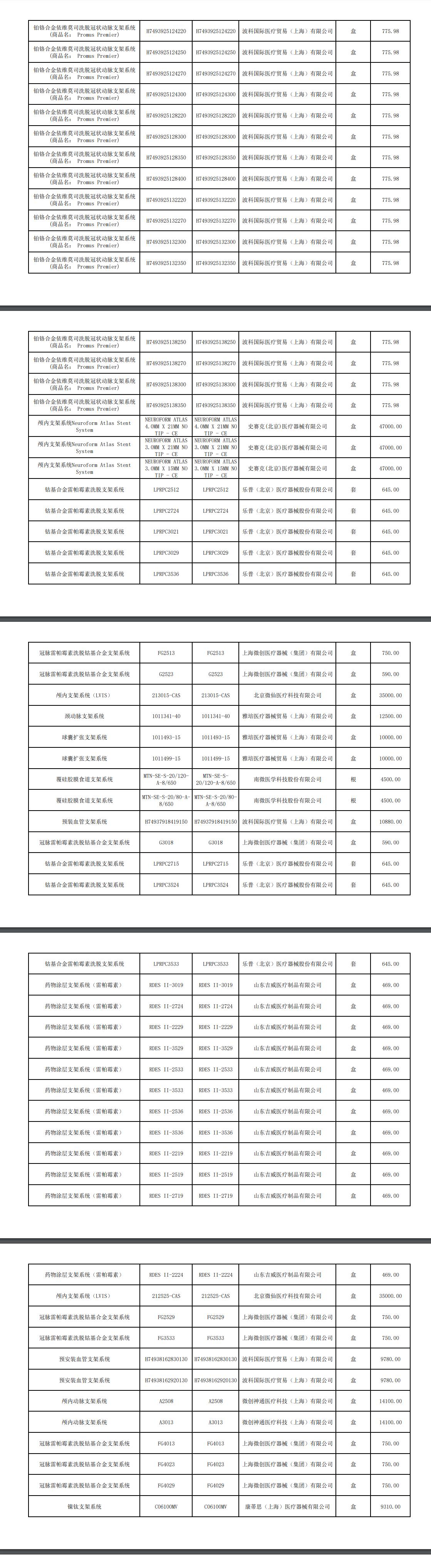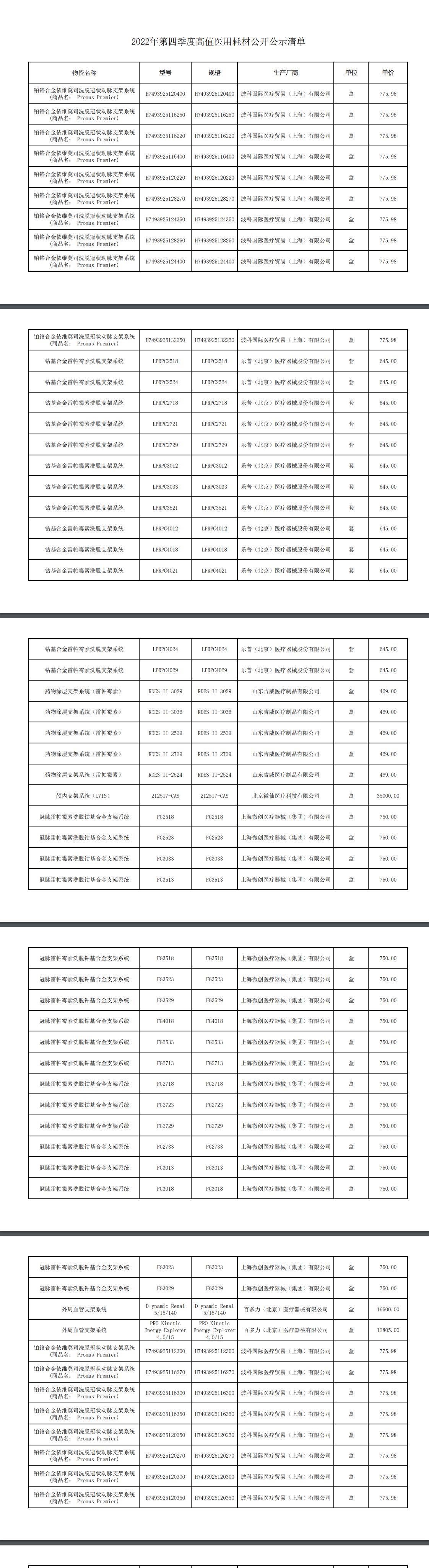 2022年第四季度高值医用耗材公开公示清单