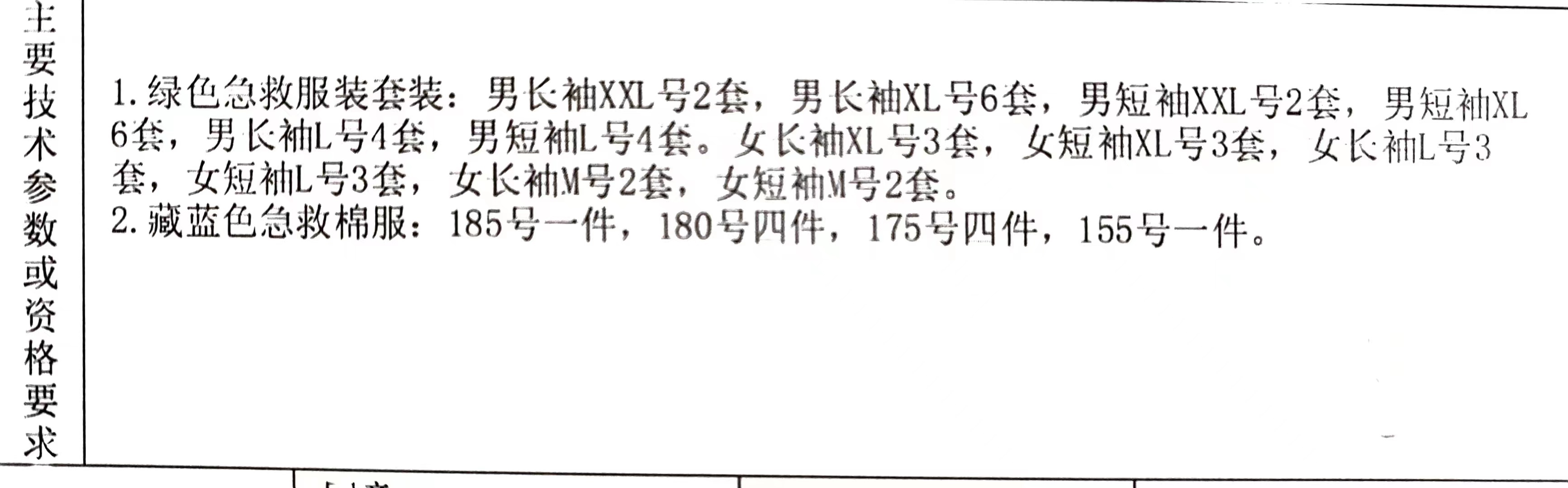 我院预采购急救服等,欢迎具有合格资质的厂商或其授权的代理商前来报名,提供产品主要技术参数必须符合临床使用要求,具体要求如下。